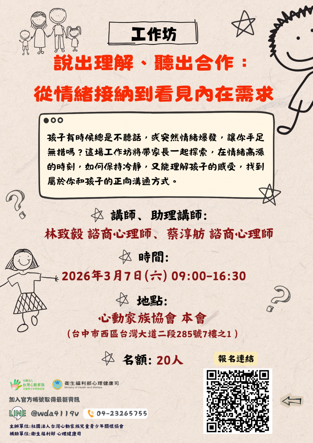 主題:說出理解、聽出合作:從情緒接納到看見內在需求講師:林致毅 諮商心理師、蔡淳舫 諮商心理師