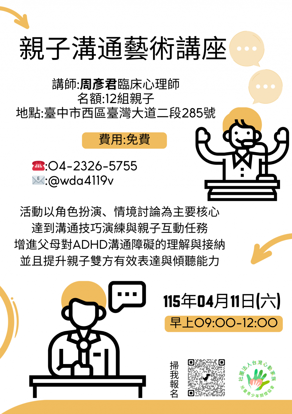 (一)04/11(六)【親子溝通藝術講座】講師:周彥君 臨床心理師